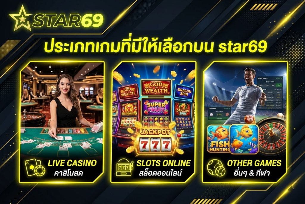 หากคุณเป็นคนที่ไม่อยากสมัครหลายเว็บเพื่อเล่นหลายประเภทเกม star69 ถือเป็นตัวเลือกที่ตอบโจทย์ เพราะรวมความบันเทิงหลายรูปแบบไว้ในแพลตฟอร์มเดียว ช่วยประหยัดเวลาและทำให้การใช้งานเป็นระบบมากขึ้น
